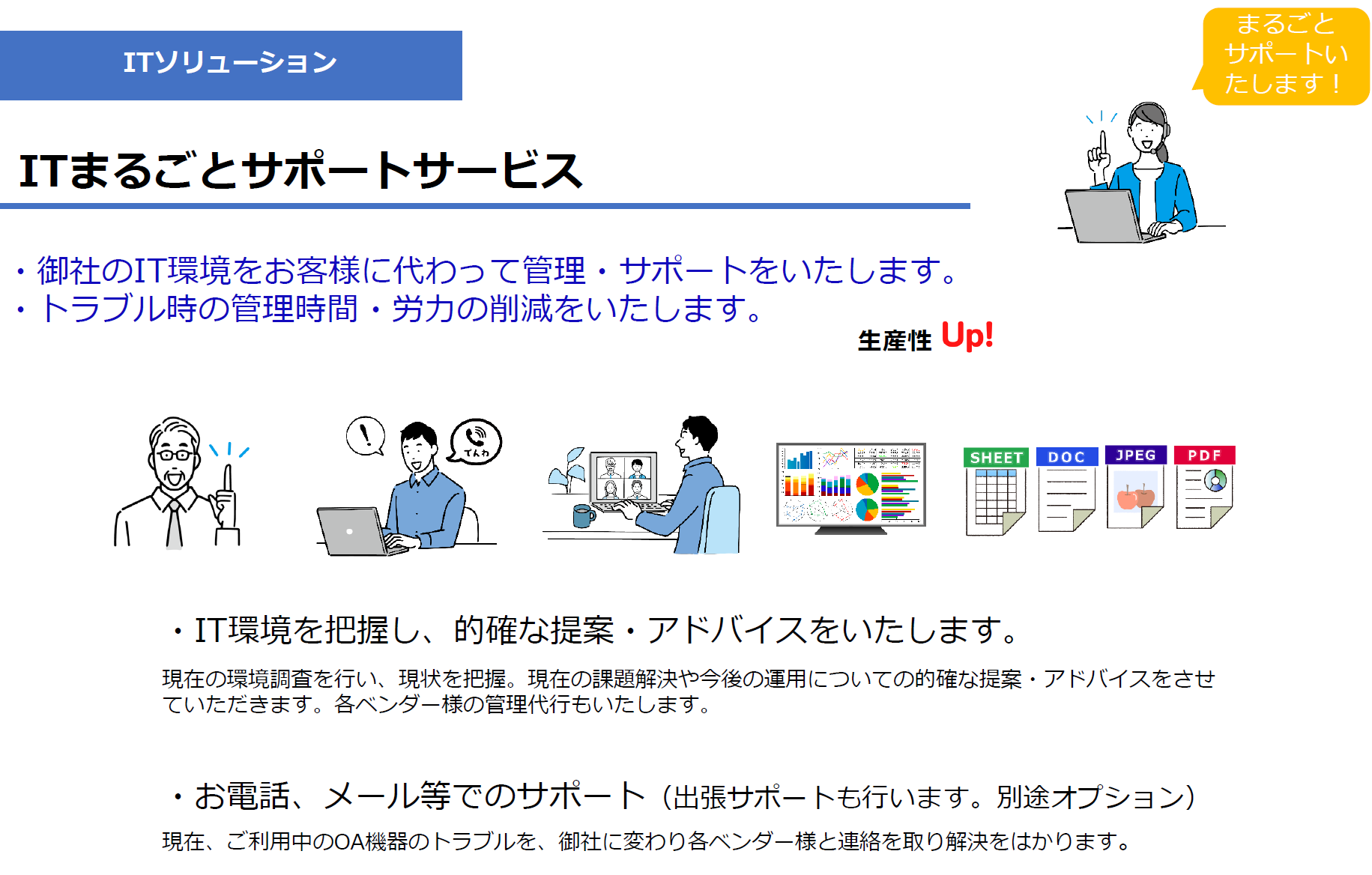 中小起業・個人事業主のみなさまに生産性を高めるITサービスをご提供いたします。